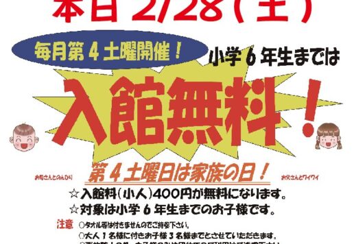 第4土曜はお子様無料の日となっております😆✨ ぜひぜひ、お子様と一緒にご利用下さい!!😊