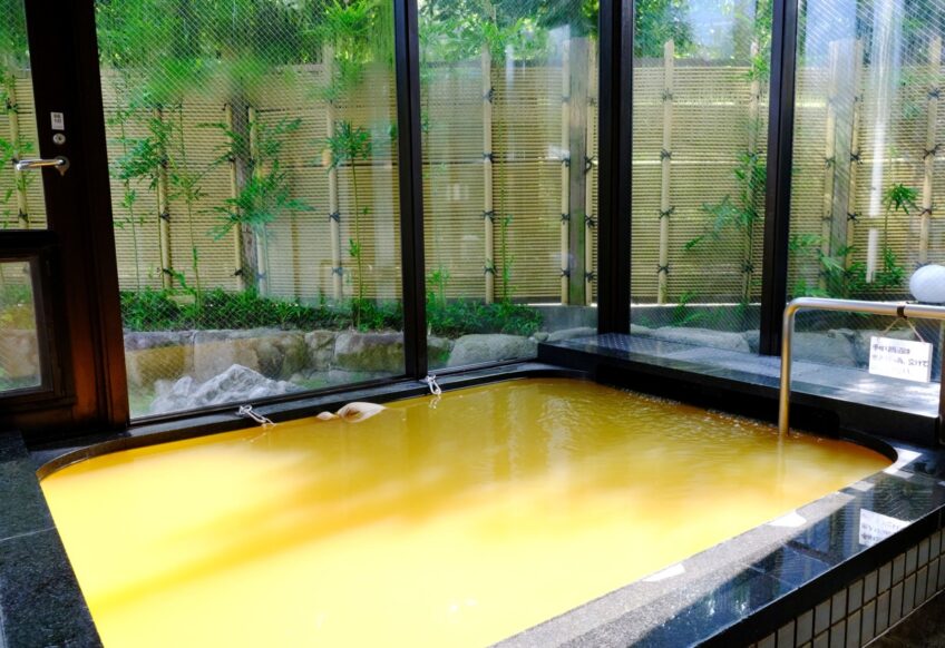 漢方薬湯は、お湯に浸かると身体にピリピリ刺激を感じ人の身体の自然治癒力に働きかけるとされる。
